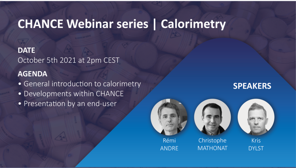 In participating to this webinar you will know more about Calorimetry – an innovative non-destructive technique to reduce uncertainties on the inventory of radionuclides and how CHANCE will develop, test and validate already-identified and novel techniques that will undoubtedly improve the characterization of CRW.